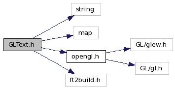 #include <string>#include <map>#include "opengl.h"#include <ft2build.h>Include dependency graph for GLText.h: