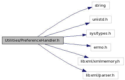 #include <string>#include <unistd.h>#include <sys/types.h>#include <errno.h>#include <libxml/xmlmemory.h>#include <libxml/parser.h>Include dependency graph for PreferenceHandler.h: