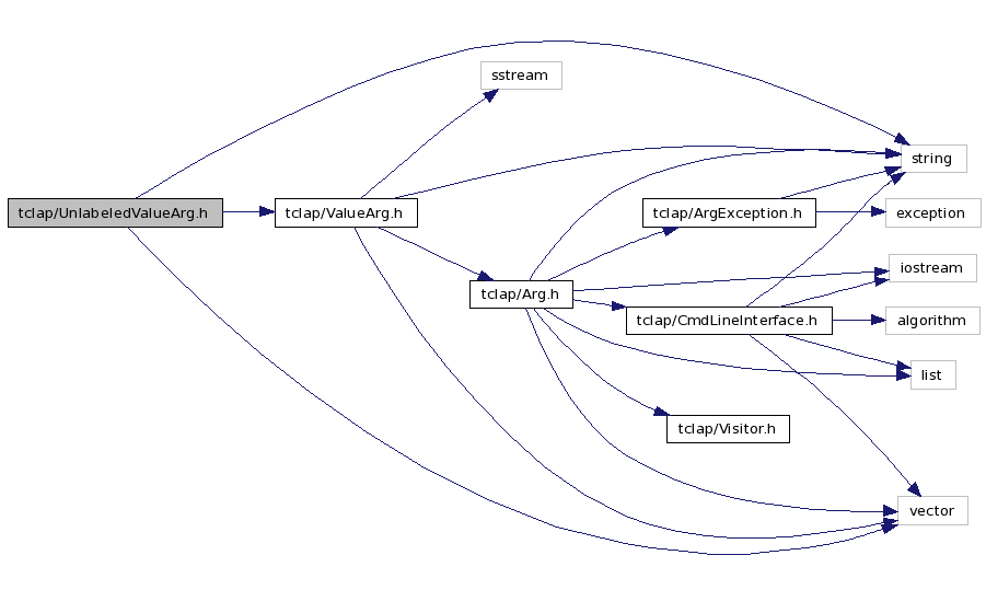 #include <string>#include <vector>#include <tclap/ValueArg.h>Include dependency graph for UnlabeledValueArg.h: